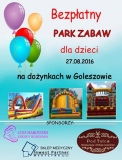 Tego w Goleszowie nie było! Specjalnie dla najmłodszych w prezencie organizujemy Park Zabaw, który dostępny będzie w czasie pierwszego dnia Dożynek Goleszowskich 2016. Dmuchane zamki, zjeżdżalnie, tory przeszkód, malowanie buziek, balony i wiele innych atrakcji! Wszystko za darmo, wystarczy odebrać wejściówki na naszym różowym stoisku w czasie dożynek! Sponsorami akcji są: Sklep Medyczny w Goleszowie Restauracja "Pod Tułem" w Cisownicy i Szkoła Rodzenia w Goleszowie Zapraszamy!