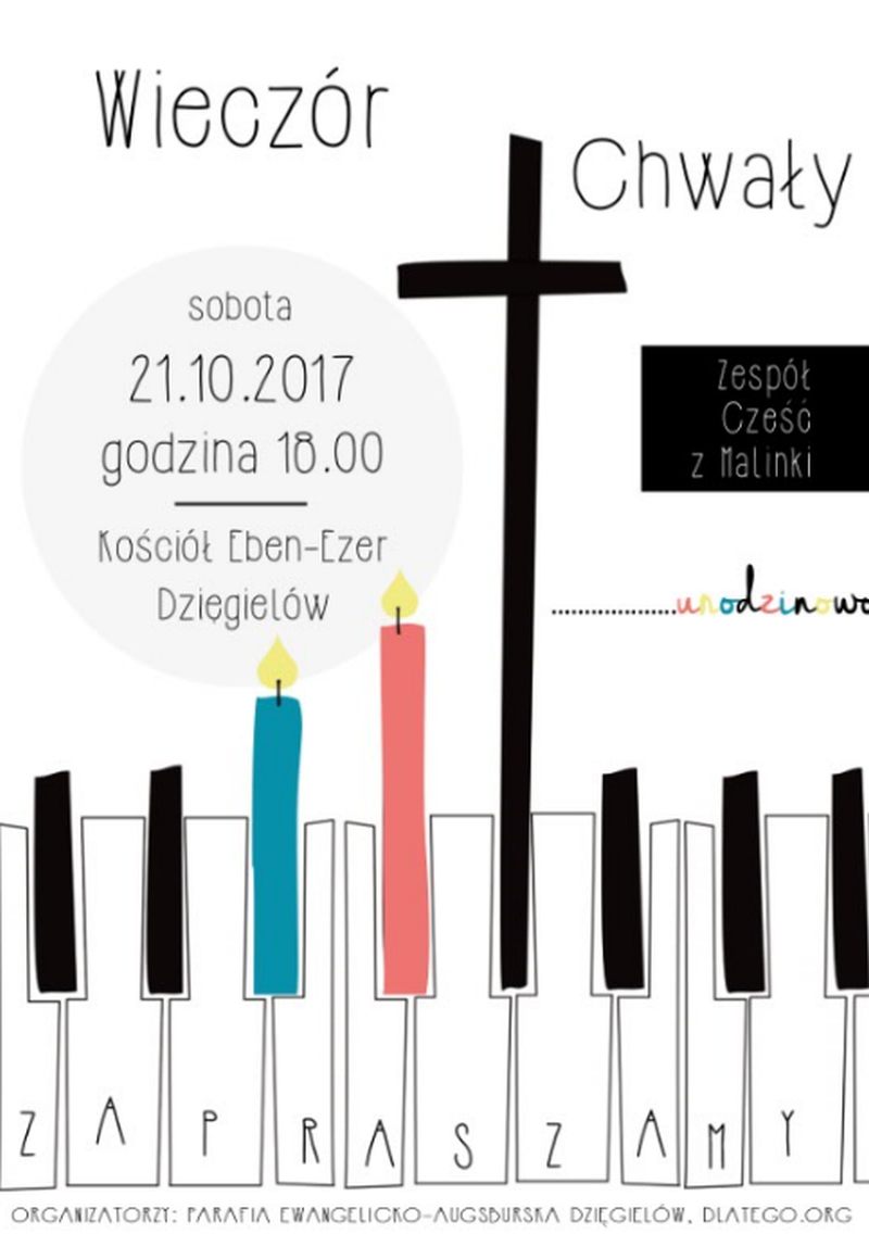 Parafia Ewangelicko - Augsburska w Dzięgielowie serdecznie zaprasza 21 października na "Wieczór chwały". Początek godz. 18.00. Plakat w załączeniu.