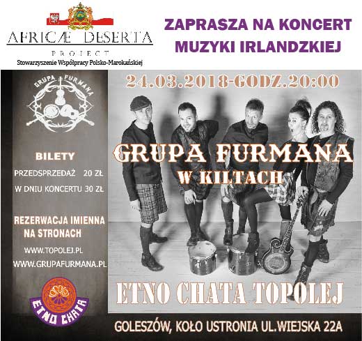 Stowarzyszenie Współpracy Polsko-Marokańskiej oraz Etno Chata TOPOLEJ zapraszają na energetyczny koncert GRUPY FURMANA.