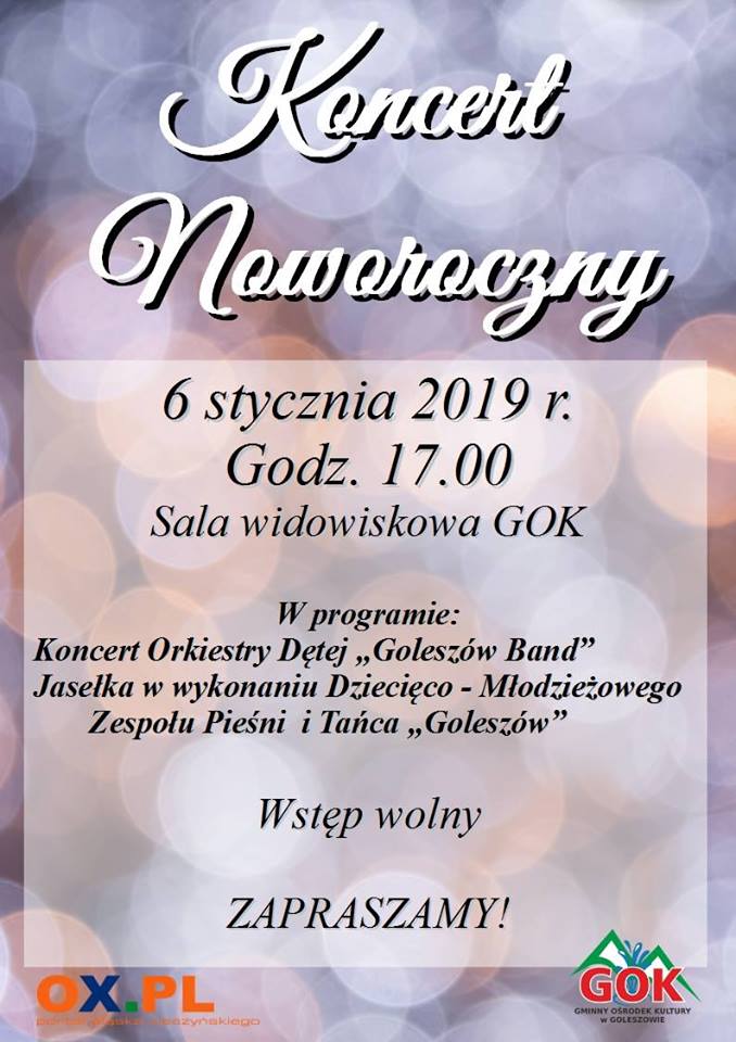 Gminny Ośrodek Kultury w Goleszowie zaprasza na Koncert Noworoczny w dniu 6 grudnia o godz. 17.00 w sali widowiskowej GOK.