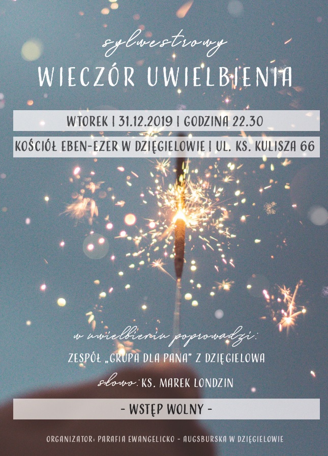Parafia Ewangelicko-Augsburska w Dzięgielowie zaprasza serdecznie na Sylwestrowy Wieczór Uwielbienia