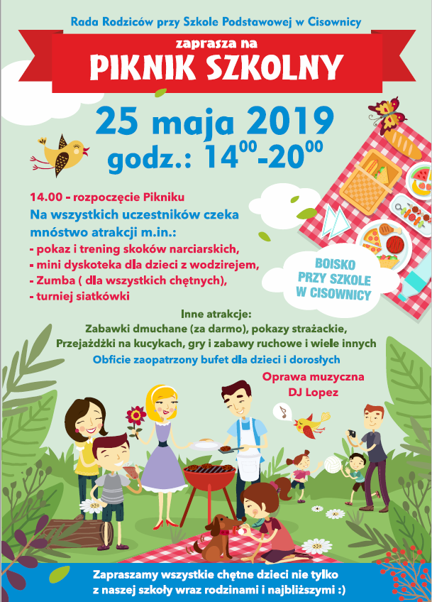 Zapraszamy do Szkoły Podstawowej w Dzięgielowie na XIII Piknik Rodzinny. Wiele wspaniałych atrakcji dla dzieci, młodzieży i dorosłych. Będzie się działo!