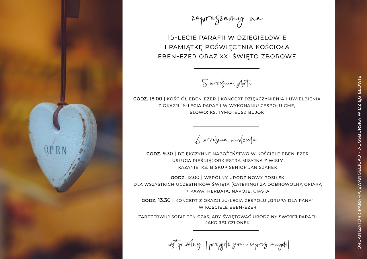 w dniach 5-6 września Parafia Ewangelicko-Augsburska w Dzięgielowie zaprasza na