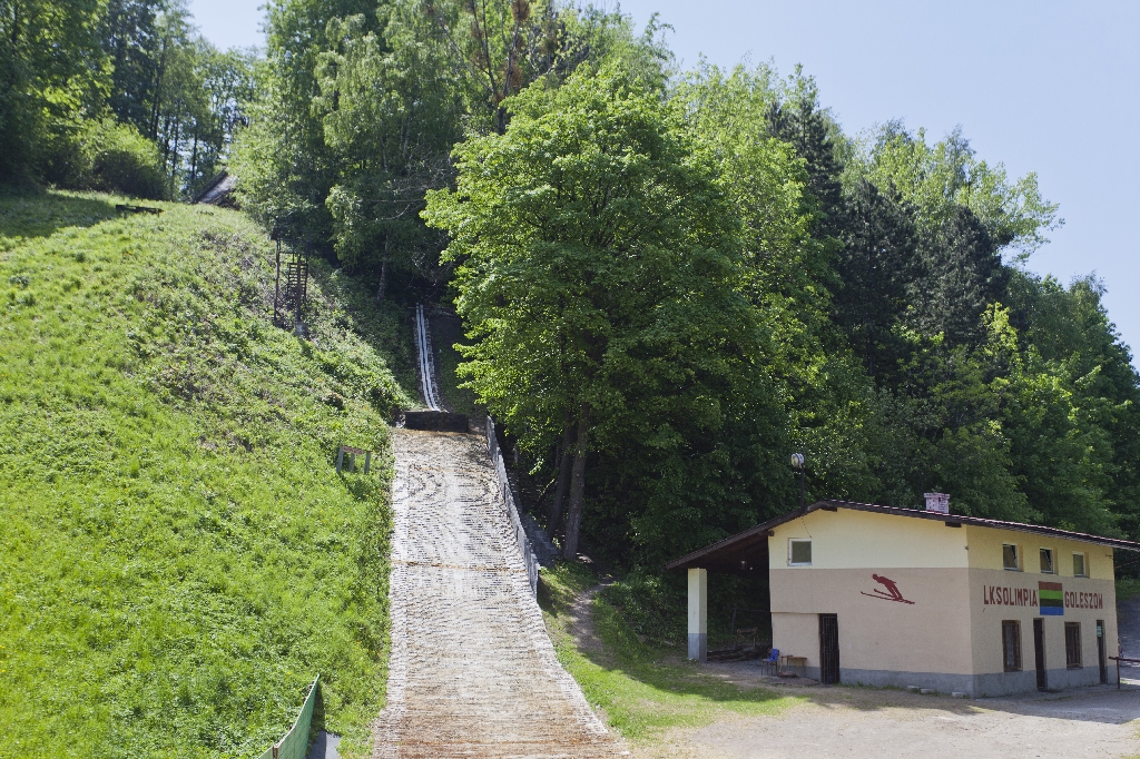 Skocznia narciarska i budynek LKS Olimpia Goleszów