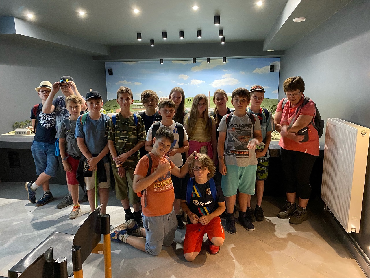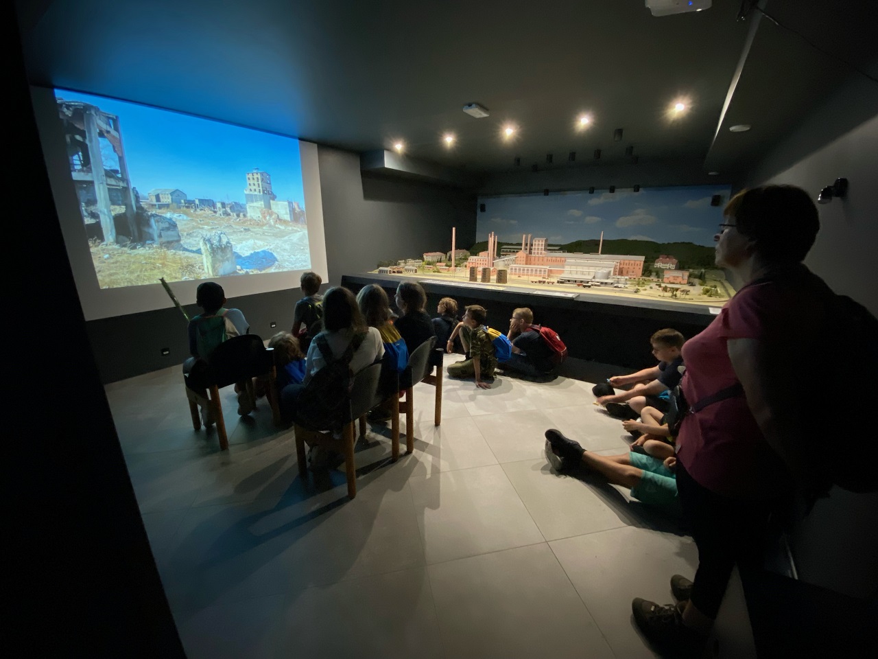 Lekcja historii przy makiecie
