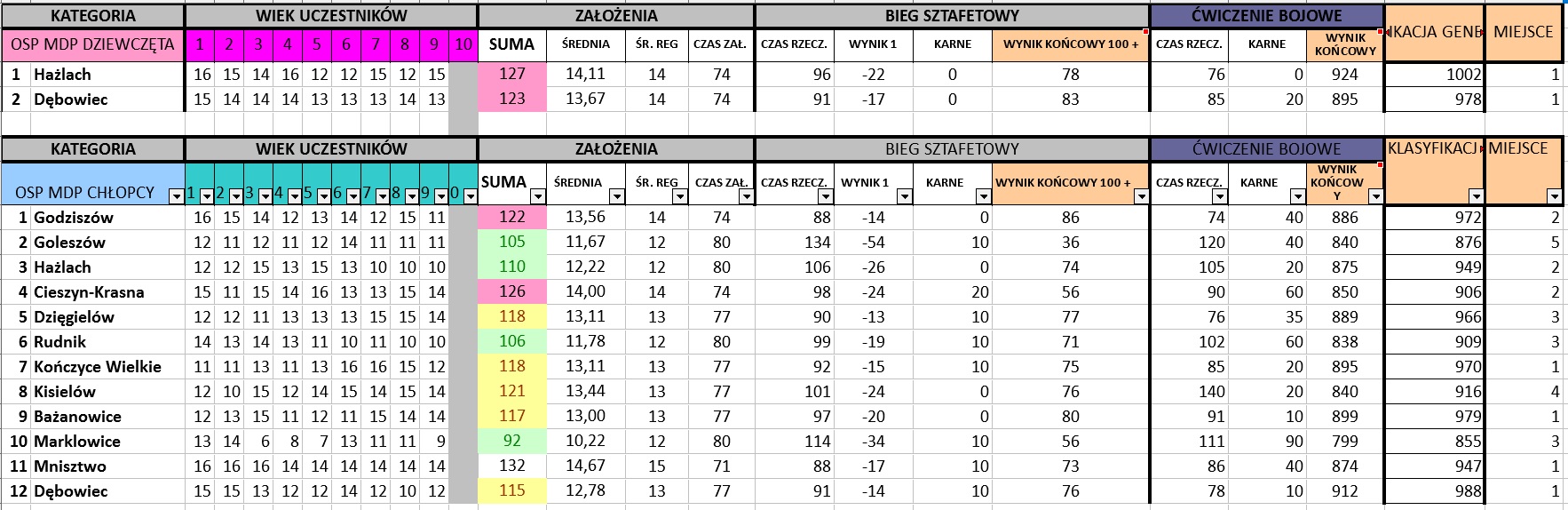 W konkurencjach sportowo-pożarniczych rywalizowali młodzi strażacy z gminy Goleszów, Dębowiec, Hażlach oraz z Cieszyna. Naszą gminę reprezentowały drużyny z Bażanowic, Godziszowa, Goleszowa, Kisielowa i Dzięgielowa. Po emocjonujących zawodach w klasyfikacji gminnej zwyciężyła MDP Bażanowice, drugie miejsce zajęła drużyna z Godziszowa a trzecie wywalczył Dzięgielów.