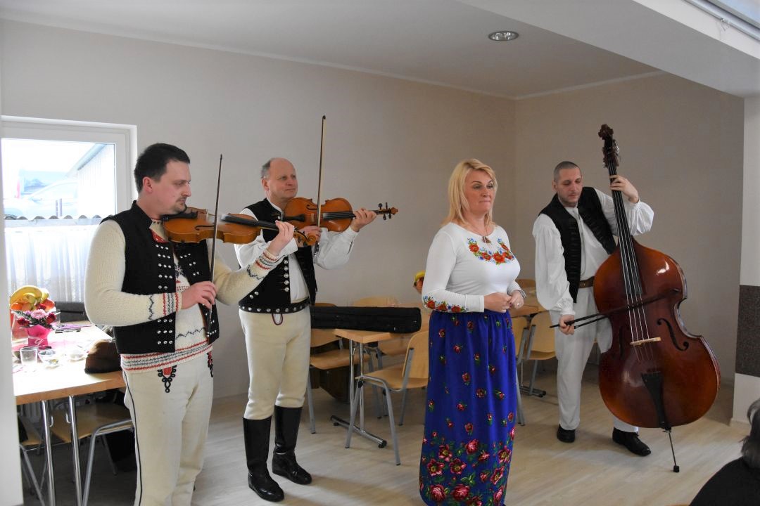 | Noworoczno-karnawałowe spotkanie seniorów z Bażanowic, fot. T. Lenkiewicz | Sołtys Jan Polok, przewodniczący Karol Lipowczan, prałat Adam Drożdż, wójt Sylwia Cieślar, proboszcz Marcin Brzóska, wikariusz Łukasz Gaś, przewodnicząca Bożena Franek | Występ Beskidzkich Zbójów |