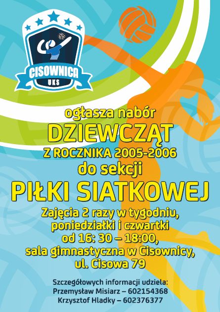 Uczniowski Klub Sportowy "Cisownica" ogłasza nabór dziewcząt z rocznika 2005-2006 do sekcji piłki siatkowej. Zajęcia odbywać się będą w poniedziałki i czwartki, w godz. 16.30-18.00, w sali gimnastycznej cisownickiej szkoły.