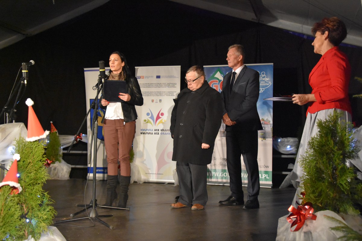 - Witam serdecznie wszystkich Państwa na rozpoczęciu gminnego świętowania, które już za chwilę skoncentruje się wokół występów niezwykle utalentowanych młodych artystów. Wprowadzą oni nas w świąteczny nastrój, który z pewnością towarzyszyć nam będzie przez całe dzisiejsze popołudnie i wieczór. Cieszę się, iż skorzystali Państwo z naszego zaproszenia mając nadzieję, że spędzony czas dostarczy Państwu kojącego wytchnienia i chwil radości, z którymi kojarzy się nam czas oczekiwania na Boże Narodzenie – witała uczestników sobotniego świętowania Sylwia Cieślar – Wójt Gminy Goleszów.