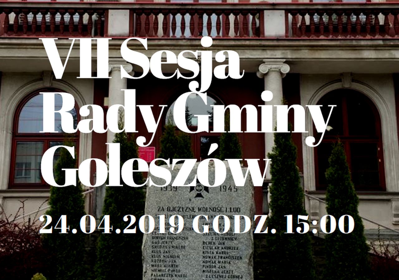 Jutro (środa, 24 kwietnia) w sali sesyjnej goleszowskiego urzędu odbędzie się VII sesja Rady Gminy Goleszów. Porządek obrad oraz materiały na sesję dostępne na www.api.esesja.pl. Sesję będzie można śledzić on-line w ramach transmisji na żywo dostępnej w serwisie: youtube