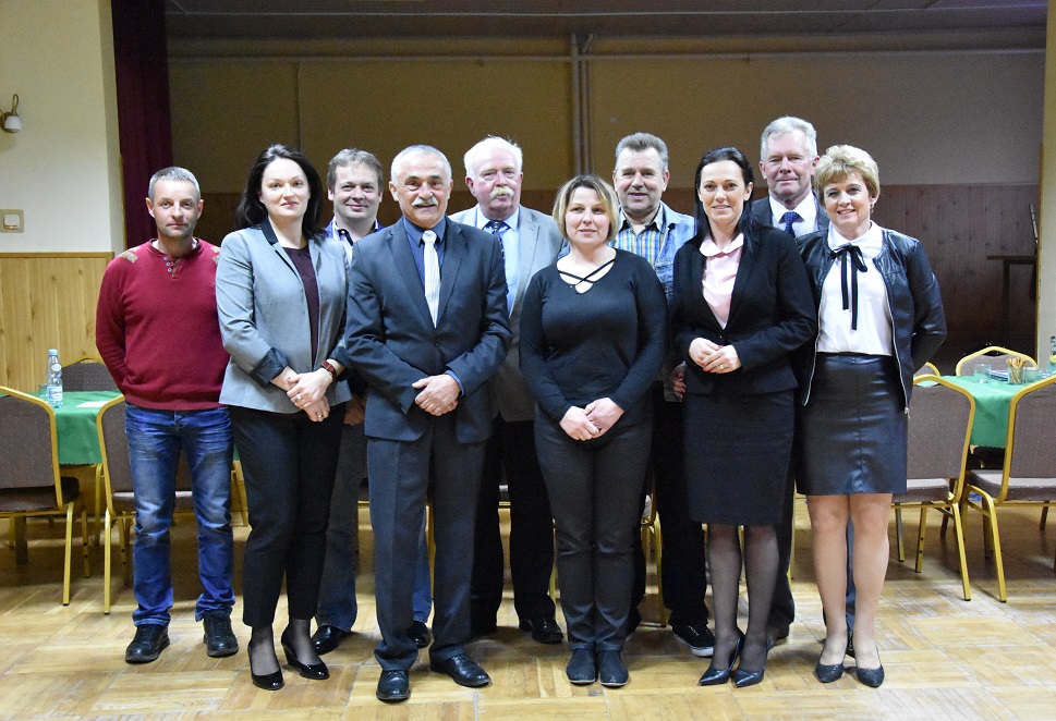 Wójt Sylwia Cieślar, przewodniczący rady Karol Lipowczan, radni Renata Hanus i Ryszard Florczykiewicz, sołtys Andrzej Ernst i przedstawiciele rady sołeckiej