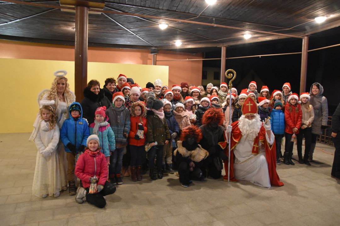 Kolędy i pastorałki wykonali uczniowie z polskiej i czeskiej szkoły z Wędryni oraz przedstawiciele naszej gminy - uczniowie ze Szkoły Podstawowej w Dzięgielowie i Bażanowic, którzy zaśpiewali „Gwiazdo świeć, kolędo leć", „Pierwsza gwiazda" i „Gdy zapada grudniowa noc". Po występie naszych uczniów na uroczystości przyjechał św. Mikołaj wraz z aniołkami i diabełkami. Wyjątkowy gość przywitał wszystkich uczestników i zaprosił do wspólnego odśpiewania kolędy „Cicha noc", którą częściowo po polsku i czesku zaśpiewało blisko 600 uczestników wspólnego „Śpiewania z Mikołajem przy choince". Po części artystycznej najmłodsi uczestnicy spotkania otrzymali prezenty od św. Mikołaja.