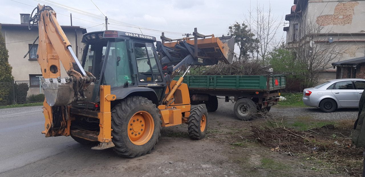 Odpady remontowo-budowlane, żużel i gałęzie zostały załadowane koparką na przyczepy i wywiezione ciągnikami rolniczymi na wysypisko śmieci.