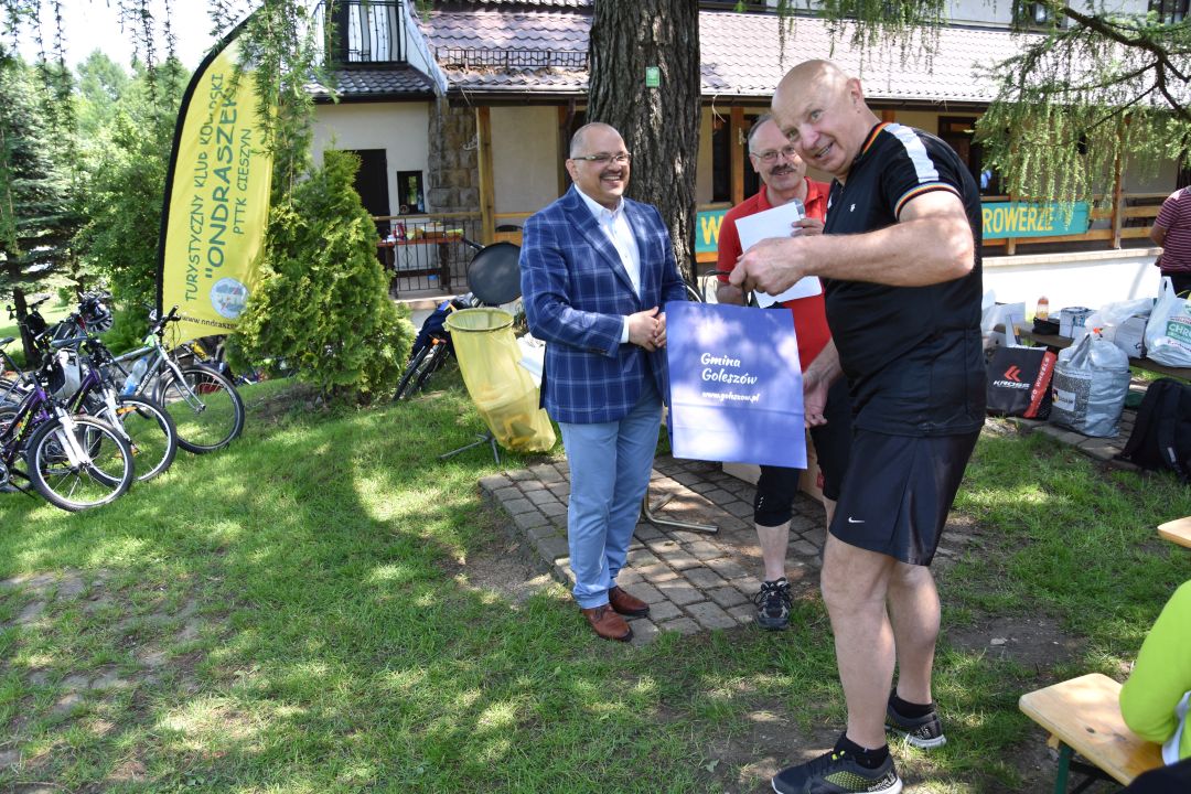 Przybyły na metę Zastępca Wójta Gminy Goleszów Rafał Glajcar, w imieniu władz gminnych, powitał serdecznie uczestników rajdu, pogratulował kondycji i zapraszał do częstszego penetrowania uroczych zakątków tej niezwykle gościnnej gminy, w tym w ramach następnych rajdów tego typu. Należy zaznaczyć, że już niejednokrotnie klub Ondraszek korzystał  z gościnności i przychylności tutejszych władz. Wystarczy wspomnieć, że kolejne  edycje  rajdów rodzinnych w 2017 i 2018 roku odbyły się właśnie na terenie gminy: w Goleszowie Równi oraz Cisownicy.